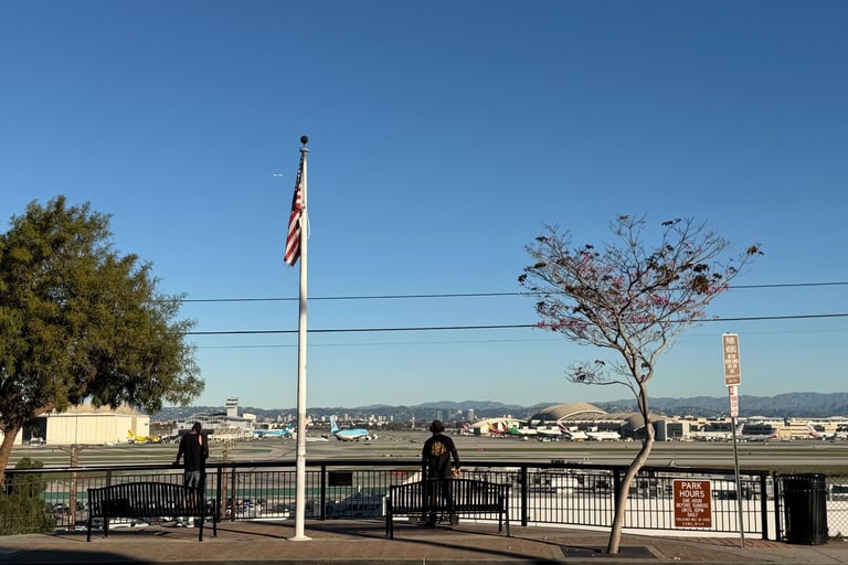 Located in El Segundo, this spot offers a panoramic, elevated view directly overlooking the south complex runways (25R/7L).
