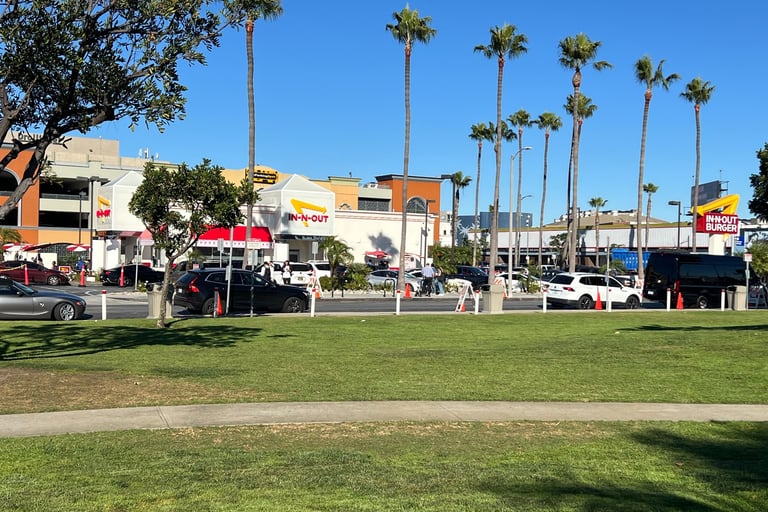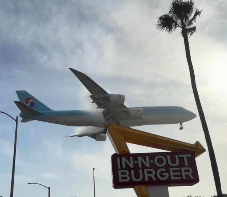 Views: Directly overhead. Aircraft are extremely low, flying straight at you on final approach, often feeling like you could reach up and touch them. See the planes flare before touchdown. This location provides the iconic "jet landing over the palm trees and the In-N-Out sign" photo opportunity.